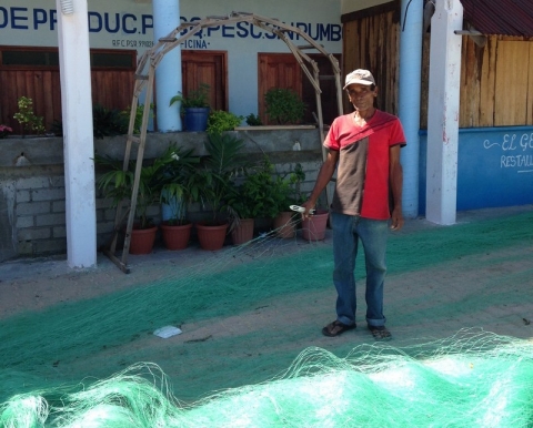 On my tour of Puerto Angel yesterday, I said hi to many people, who responded with smiles and greetings: women pushing baby strollers as their toddlers ran ahead laughing; women sweeping porches, men at work, or looking for passengers for their taxis; shopkeepers, youth and waiters. But yesterday I promised to tell you about Flavio, the old fisherman who was mending his net when I walked back home. I’d said “good day” to him and his two friends on the way past, but didn’t recognize him alone when I returned. I simply stopped to say hi and ask what he was doing. With a huge plastic blade that resembled a knife, he was mending his huge, piled up green plastic net. He inserted the blade through a square, threaded it twice to make a double knot, marked the next corner with his finger to measure how much line to leave, then threaded it through the bottom square, where he made another knot. He worked quickly, sewing new squares into the empty void. I asked him about his work; he fishes every day, catching 30-40 kg of “pescados,” or fish. Yes, he answered, many people are fishermen in Puerto Angel, or work in the tourism business. There was also a school, three internet cafés - generous for a town so small, but most people wouldn’t be able to afford computers, or data for their phones. (In the store later, I discovered that there was a data plan for just whatsapp and facebook; I'd have to go to the internet cafe to use the full internet.) Many people were using phones at restaurants, on the roads, or in their cars.