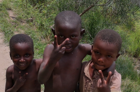 Upon taking my leave, I descended the hill towards the shore of Lake Kivu. Similar youthful optimism shined through the smiles of three boys who spontaneously gave me the peace sign on the path. Women sat in the local market behind tables and tarps covered with fresh vegetables, sugar cane, and tiny sambaza fish, freshly caught from the lake. Goats munched on cabbage leaves before being shooed away by the seller.